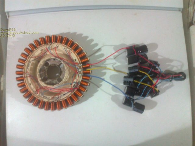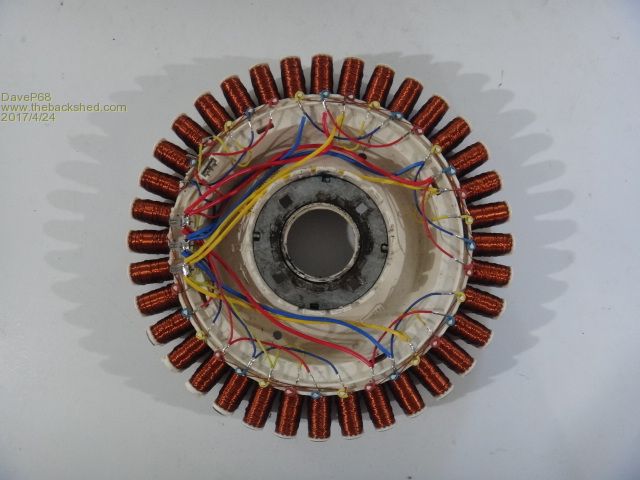 Here is a photo of the finished stator re wire (note the coloured coded wiring).