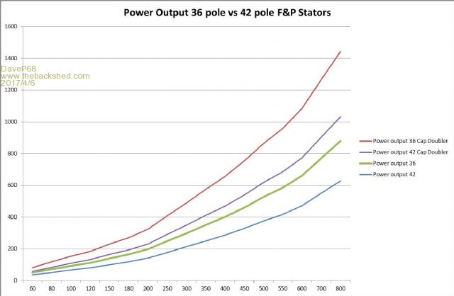 Here's a graph with revised output data 36 with black rotor cap vs 42 poles.
