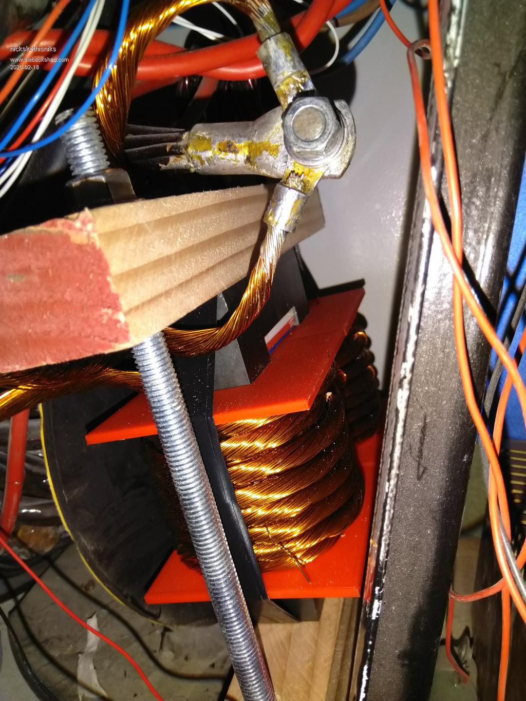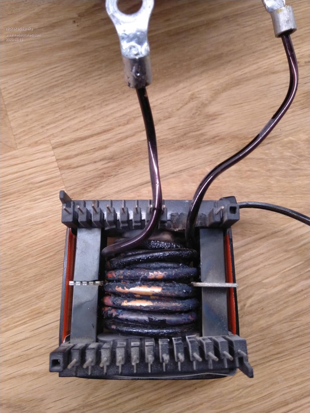 I must make a new coilformer with abs. The new coilformer will hold 6halves and will be suited for the whole powerrange this inverter can take. The airgap will be a lot smaller so should keep surprises away.