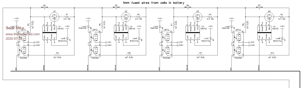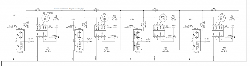 Rather than have modular plugin boards containing the cell dump loads and circuitry, have opted to include this plus a 1 amp load resistor for each cell on the main pcb. The mosfet that switches the load resistance is controlled by an isolation voltage generator chip, similar to previous design, but new chip has a higher output, si8752 and is faster.