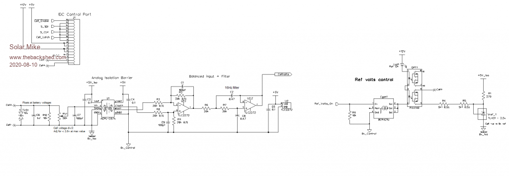 The system is self calibrating in that a 2.5v reference can be switched in simulating a battery cell, thus CPU ADC count can be adjusted in software to read the correct cell voltage.
