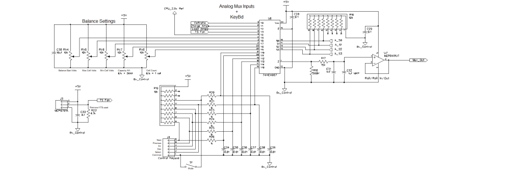 Here is the schematic for the BMS control board, No CPU as yet. Require 15 IO pins, most of the analog is switched by a mux chip, also allows setting up preset values by multi-turn pot, so keyboard not necessary required to get it working.