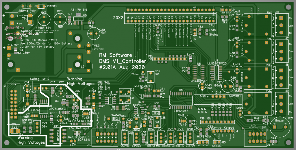 Finally completed a pcb 200x100mm for this project, two types of PSU has been provided for, either a 230vac:12dc for 100v battery systems, or 72:12 for 48v setups.