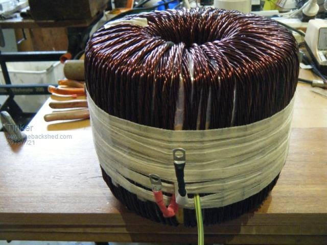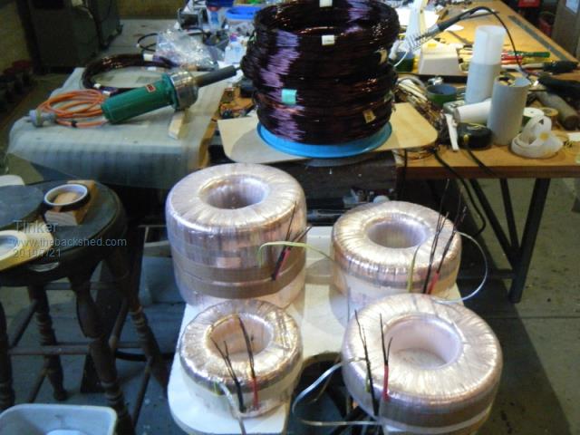The total weight of copper wire used was 15.3kg, fortunately all was recycled from these and other torodial cores. Torodial cores are usually not lacquered so the wire comes off in relatively good condition for straightening and re use.