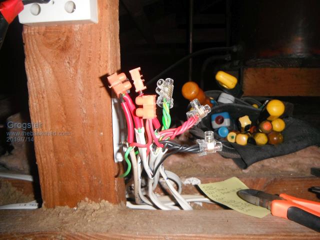 I should point out that I am not technically ticketed as a sparkie. I am an EST - Electrical Service Technician. This is one step below full electrican. But the reason all this is legal, is that in New Zealand, you are legally free to do any electrical wiring you like ON YOUR OWN HOUSE. It is illegal for me to do this kind of work on someone else's house, but I am free to do it on my own house.