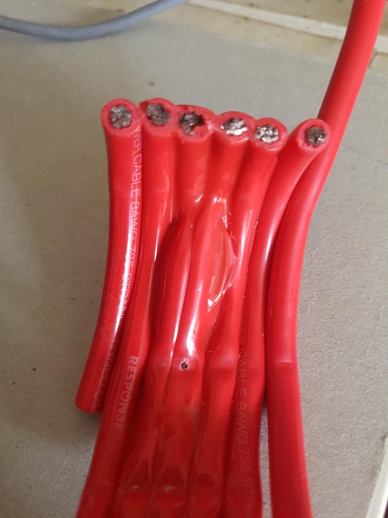 Since it was about 1 year of continuous service from the 6kW Madness powerboard & nanoverter controlled inverter it was time to have a look to see how it's going. All OK from about 2.8 MW.hr of output over that period. Except the choke windings. I used the cable from here Two chokes, 5 turns around one, 6 around the other. The 2 chokes were wired in series. Here is the winding from the 6T choke. ![]() ![]() It seems I need to use higher current cable and maybe something that can handle a bit of heat. The 5T choke was effected to a small degree, nothing like the above. I rewound the choke to now have both cores stuck together with doublesided tape and put enough turns in it for 70uH. The cable used allowed 3 runs of 3mm diameter (7mm2 area) so it's probably going to be good for another year. wronger than a phone book full of wrong phone numbers |