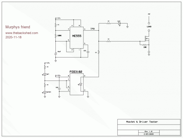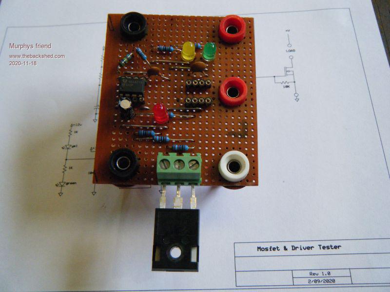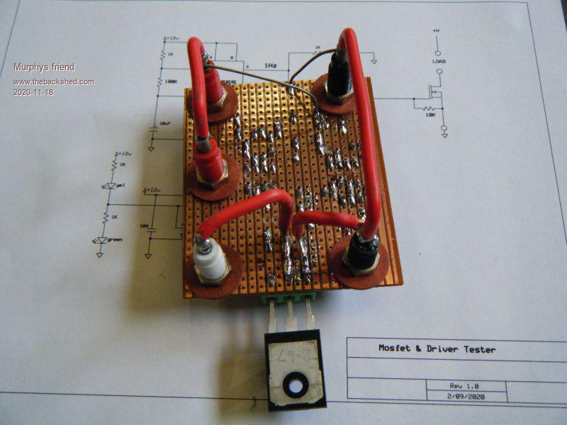 Here's a handy little tester to check if that Mosfet or driver is still working. It's just a basic Go/No Go test not a switching speed etc. test.