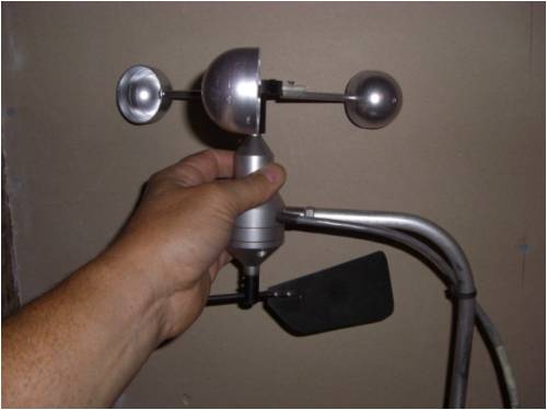 Hi guys ! Am trying to get data from a rebuilt professonal anemometer I found in a skip. It only had one cup when I found it so I have replaced all three with measure cups from "Vanish" wash powder and some alu tube(see attached pics)
