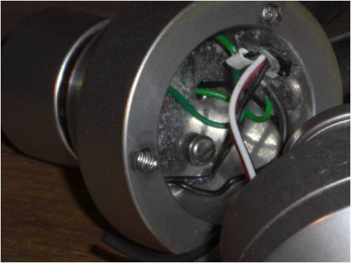 Here are pics, the green wire and the black wire going through the hole come from the windspeed sensor. The other wires are from the direction sensor which I am not concerned with.