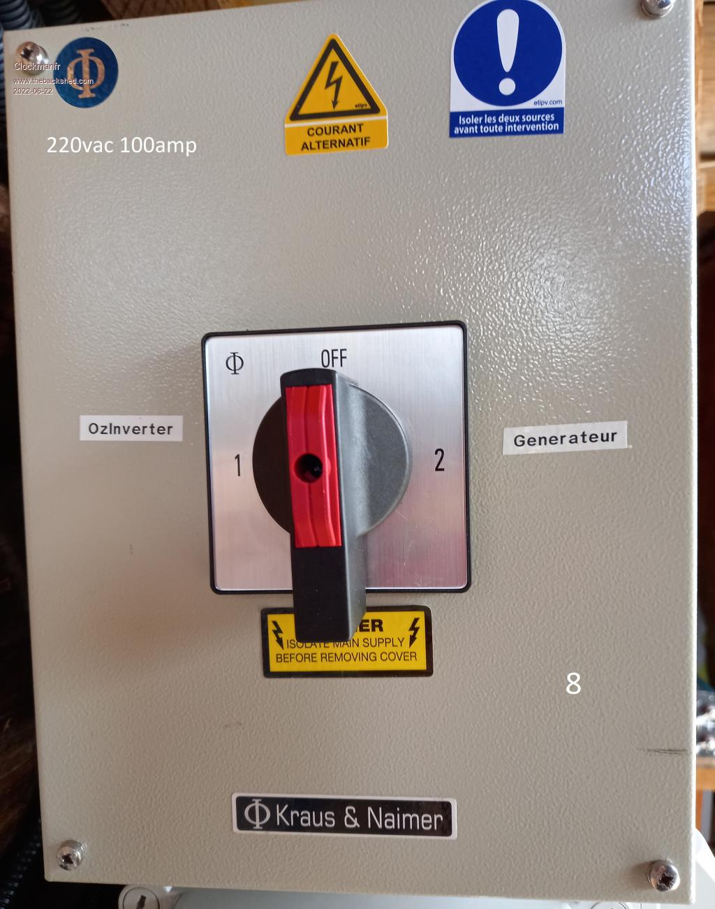 Kruas & Naimer are the Rolls Royce of change over switches. The one in the photos below is 150amp at 240vac and yes it can actually handle that.