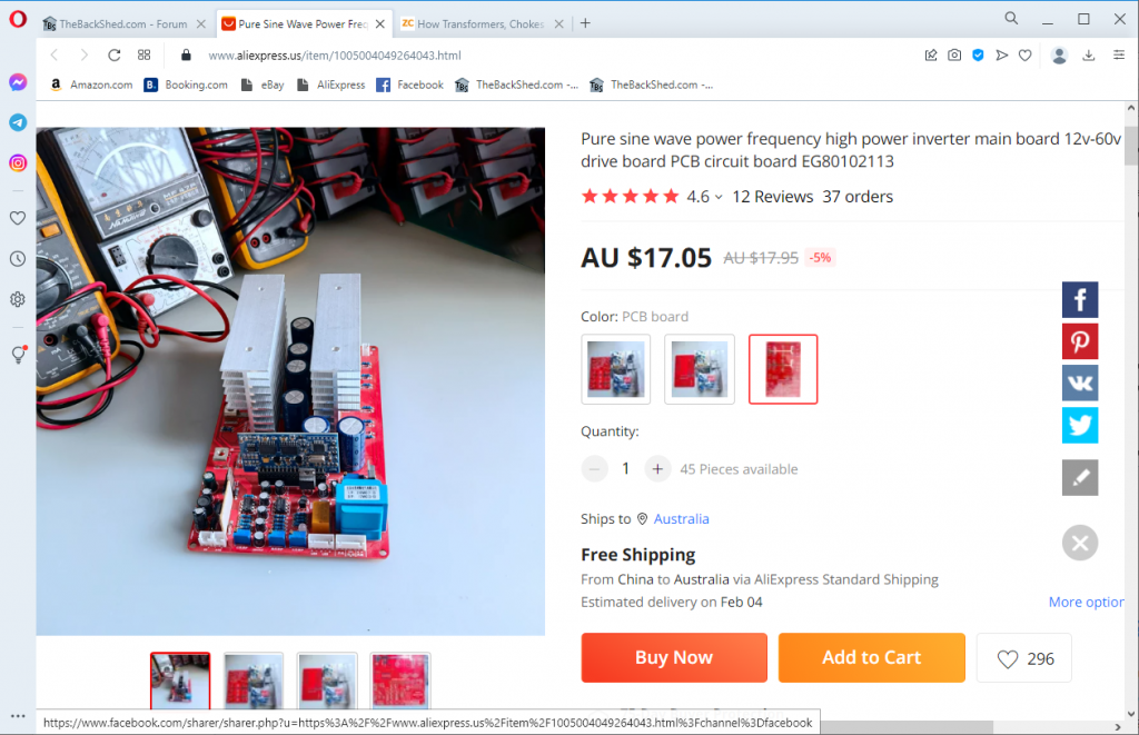 Looked at that link, $AU17.05 just the PCB. Full kit $AU66.94. Some bad reviews. Searching. In browser type:- site:thebackshed.com searchterms Better results. |