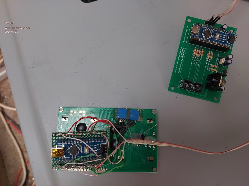 Well I reckon I'm becoming the Ozzie version of Electro-Boom the otherday when I got up at lunchtime I decided to check if that first LCD was still good and instead heard a nice loud bang as the diode on the nano went to magic smoke heaven, so programmed a new nano and found the 7805 on the brainboard was very hot so turned everything off. So replaced the 7805 on the brainboard and set it all up again only to find the 12-12 chip was getting toasty.