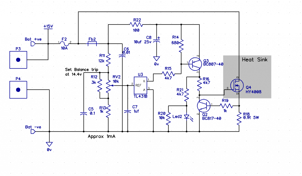 I am tempted to replace this with a 8pin cpu + mosfet, cost will be the same, this would give me more functionality, to pwm the load according to voltage difference and measure the voltage in the pwm off state, or drive a flyback up-converter to feed the wasted power back into the full bank.