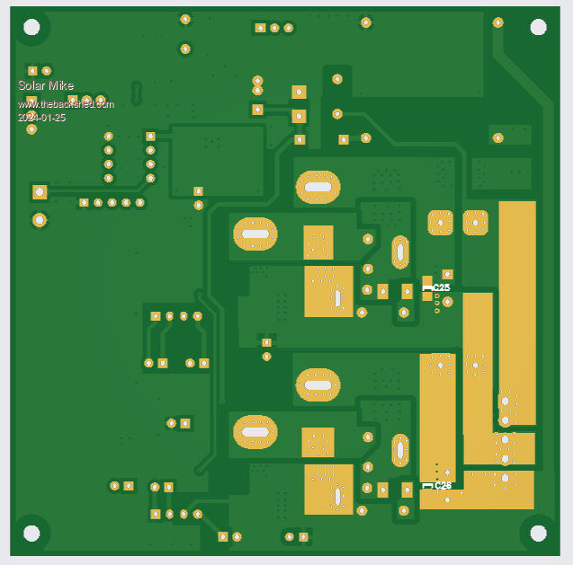 Threw this board together, has a dual forward converter, one for each battery; all 4 windings 10 turns each wound on the same ferrite ring core. Driven by a common 100 KHz PWM signal just under 50% duty cycle.