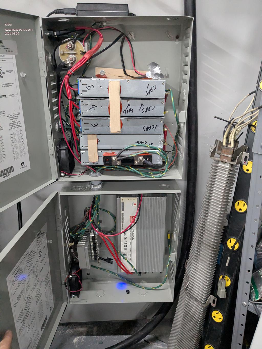 I hope everyone had a wonderful Christmas and are set for an eventful 2026! I did a bit of work in December on the system, mainly because I got my hands on a few more batteries on the really cheap. I was not planning on expanding the battery, but you know how these things go. So right now I have 2 batteries, one with 26 internal 36v packs and one with 20 internal 36v packs. On top of the smaller battery, I have the MPPT and battery charger mounted. So the plan was to relocate these 2 items, so I could add another 6 packs to the 20pack battery. Moving the MPPT was fairly easy, as I just moved it to the wall. ![]() Rather than just move the charger, I decided to upgrade it. Theoretically, my previous charger should have been able to charge at 25amps (~1950w), however it used 2 12.5amp 54v power supplies in parallel, and each supply tended to hog all the current, and then shut down. I jury rigged it by putting some resistance in series with each power supply, but every once and a while they did not play nicely. This led me to reduce the current to about 20amps. On top of that, the efficiency of the setup was not ideal, due to this resistance and also the fact that I had a diode array in series with the supply to stop back flow of current. This array had a drop of about .68v across it. So I ended up replacing the 2 12.5a 54v power supplies with 5 12v power supplies. (2 are SUPERMICRO PWS-1K02A-1R and 3 are HP HSTNS-PL29) I also purchased another Mean Well HEP series 24v supply, with adjustable current limit, however this was a 13.3 amp unit to put in parallel with the 25amp unit I have. In all, this should theoretically yield close to 3kw of charging power. I replaced the series diode bank with more V40100C diode pairs to drop the forward voltage to .40v. One of the problems with using these cheap 12v power supplies, is that as supplied each connects the -ve rail to the ground pin on the AC and they have many capacitors between the -ve terminal, and the live AC for noise suppression. When you string a bunch of these power supplies in series, even with their AC ground pins unconnected, there is quite alot of AC being injected into the dc by all those capacitors in the group of supples. So I opened up the supplies and removed the capacitors. ![]() Some of these supplies are 96% efficient, and I see they are using FET's to reduce the forward drop on the AC side bridge rectifier. Very cool. ![]() Anyway, I mounted these supplies in some boxes I got off marketplace, and mounted them on the wall. I still have work to do here, as the 13.3amp supply has not arrived, and I want to add more functionality to the charger. ![]() ![]() Greg |