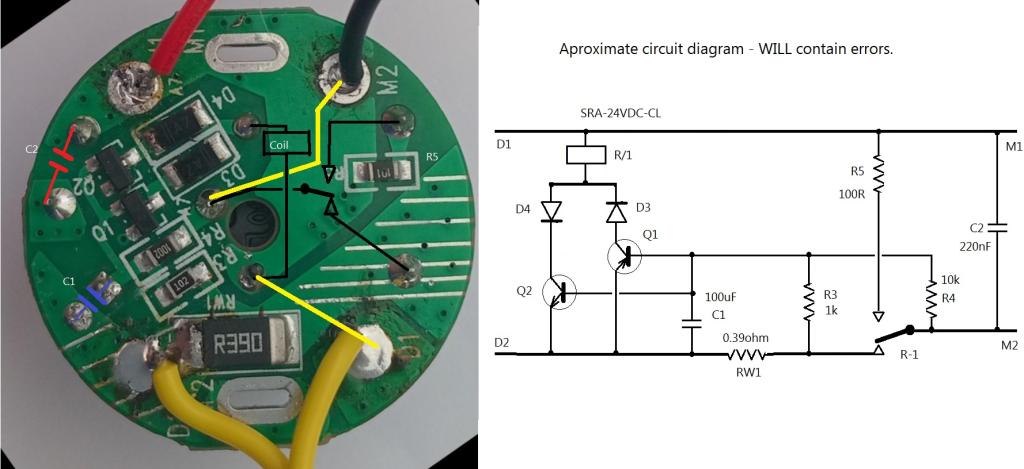 Another thing to check on the current cut-out is the resistance of the relay contacts, D1 to M1 I think. On the top photo the relay conceals the tracks so you will need to check where they go with a meter.