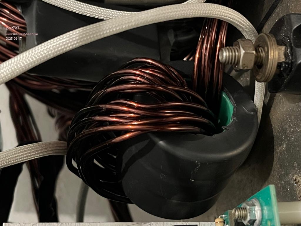 Off-grid profiles still have active anti-islanding just more tolerance for frequency, voltage and rate of impedance changes. Since you are already using an off-grid profile I suggest you find one with anti-islanding disabled completely. IIRC, such profiles have "AI" in the name somewhere. Your chokes appear to be using common green ferrite cores so it's likely they are saturated at 5500W (> 100A to battery). You'll need to use sendust or similar cores to avoid saturation (see KeepIS threads for more detail). Having said that, I doubt core saturation is the main reason for the distortions you are seeing. It would help determine the main distortion cause if you could capture the current waveform from the iQ7's. Anti-islanding disturbances are pretty obvious in the current waveform. |