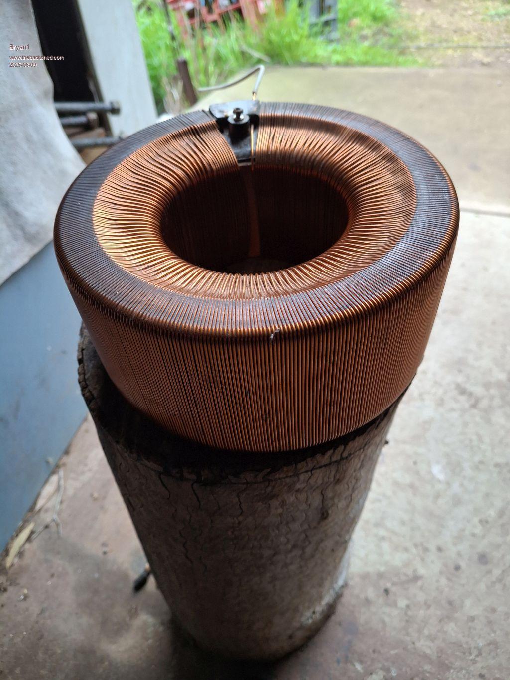 So I asked Co Pilot the question of 13 turns on the primary at 24 volts for a 240 volt output and we finally settled on 130 turns. Now I said I was going 2 inhand and the reply was yes that will double the current rating.