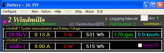 The two different MPPT systems have made each windmill perform well. Windmill 1 is an early cutin windmill that stalls very early on 24V battery. Windmill 2 is a late cutin windmill that produces power normally after approx 350rpm. The logging has allowed me to directly compare important windmill operating measurements. It is reassuring to see windmill output power correlating so well to available wind energy, and the rotors closely tracking the windspeed, even for completely different controller mechanisms. Gordon. become more energy aware |