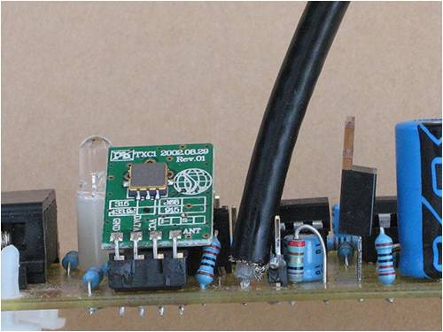 The antenna is rather important and can be a length of hookup wire 176mm long, this might vary slightly due to track length and other factors. Best results is with the antenna vertical, but this can be difficult in the wind or the wire type used. I have had good results extending the TX antenna 1-2 meters away from the circuit board with 50 ohm coaxal cable and then placing the antenna on the end of the coax. The coax outer shield needs to be connected to negative on the board and not used at the antenna end. The inner conductor is connected to the antenna out of the module