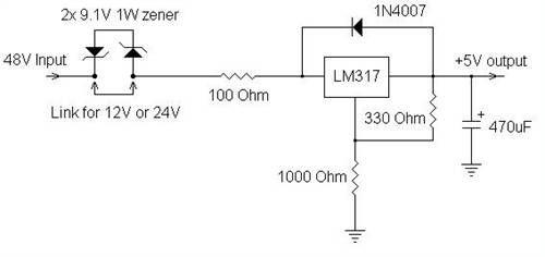 Doing the averaging on the PC's fine as long as the comms can keep up with the sampling... A moving or rolling average is better again, because it's always the most up to date average. Your right about the LM317 the rating is 40V (that's what happens when i do these posts late at night) although i'd probably want to stay closer to 30V to be conservative. But perhaps i didn't spell out what i had in mind with the zener diodes. I wasn't thinking of the typical shunt regulator, which is generally always how you see a zener diode used. And yes i agree this type of regulator does waste alot of power. But using them to simply drop some voltage, in a way thats not dependent on the current draw, which would be the case if a simple resistor was used. Actually some 9.1v 1W Zeners would be a better choice, this will drop almost 20v that won't change much with the current draw of the regulator. Zeners typically drop a abit more voltage than the nominal spec, especially as they warm up a little bit. 48 - 20 = 28V minus a few volts across the 100 Ohm resistor on the regulator input leaving approx 20V differential across the reg so it can do it's job. The max current output is determined by the power disipation of the zeners 1/9.1 = approx 100mA, although i'd always genereously derate the zeners by at least half especially in a high voltage regulator application. If more current is needed then just parallel a few zeners up... The 100Ohm resistor is to safe guard the zeners and limit the current when power is first applied. As the 470uF cap will draw a big gulp of current as the regulator attempts to charge it up and this could easily exceed the max current rating of the zeners. Also it would be highly recomended to have the reverse diode across the LM317 to stop it blowing up when power is switched off. Regards AB Einstein: Everything should be made as simple as possible, but not one bit simpler |