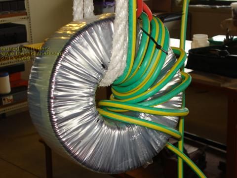 Thanks Tony ,, thats exactly what i've done ,,and tried to explain in earlier posts... 15 turns one way ,,15 turns the other way ... Bundling,,, I actually stripped lots of building wire and got the equevalant of 25mm square section ,,, but,,, it was a lot "Bulk'ier" if thats a word..?? As I said ,, it's sit and look time for another week --under the doctors orders... I'd have a look at using welding cable next time ,, it has 2 insulation covers , so just strip the outer cover off and you then have a very flexable , well insulated, cable mass to wind. Cheers Bruce. Bushboy |