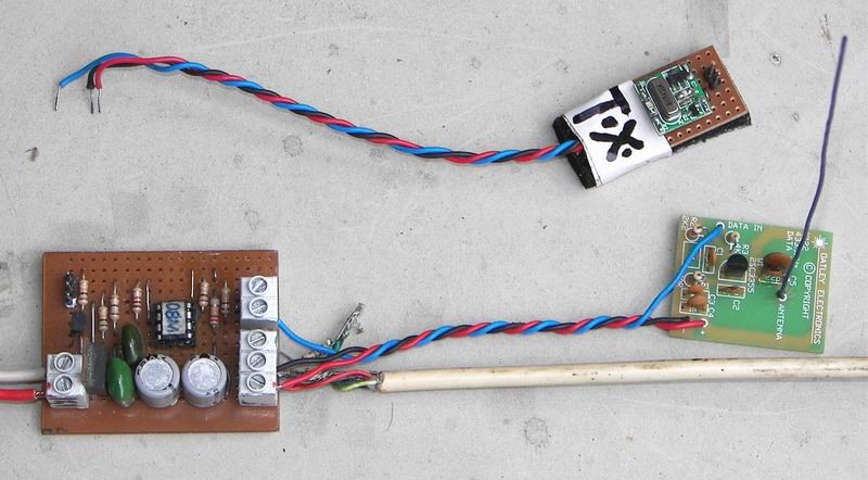 I have over the last few weeks been playing with those little transmitter and receiver units sold by Oatley Electronics. I did not have a lot of success with them at first but now have a satisfactory performance. Now that's satisfactory... not perfect.