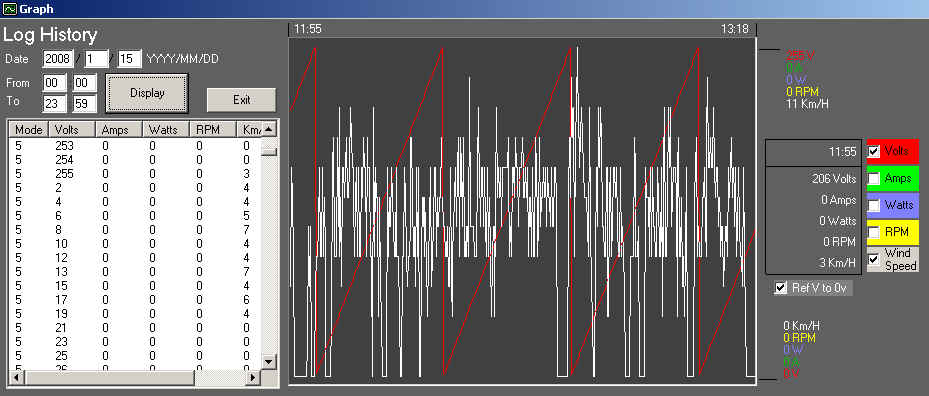 Graph of Anemometer readout using Gizmo's PicLog.exe