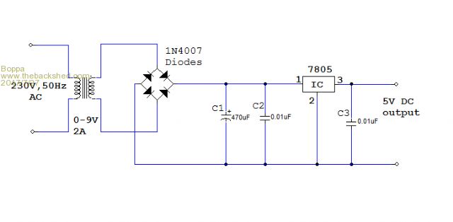 Boppa said  Using the circuit below, you can make your own 'old fashioned transformer driven' 5vDC supply either using a transformer if you are confident of your ability to solder and handle mains voltages, or if you are squeamish about touching anything to do with the mains, use a 9VAC 2A plugpack (wallwart) and put the rest in a box on the end of its lead.