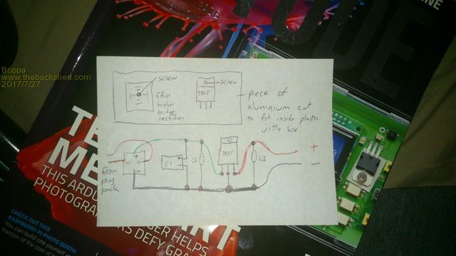 note with a 1A plugpack as shown above it will likely cause the plugpack to shutdown first as it overload before the regulator chip will, a 2A plugpack wont have this issue (I just didnt look for a 9VAC 2A plugpack as Jaycar are in my shortcuts and they didnt have one lol)