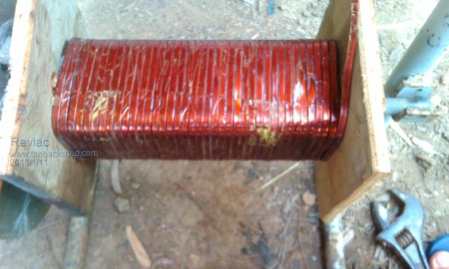 Winding using the lath was my first thought, Have 2 Lathes here and they are out in the yard, to hot and sunny ATM they should be in the shed but the 2 large sheds are full of other junk and no room to work, still do all the work in the yard as we haven't assembled the 42m x 12m shed that will sit between the other 2 sheds.