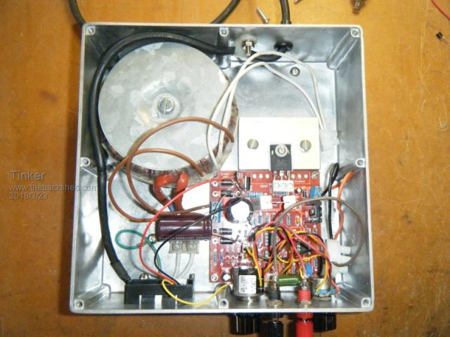 Very impressive Klaus, yours is a lot simpler mechanically than the way I have constructed mine. Thermally it is very well thought out and it looks very efficient. I think we have both been a bit unlucky with receiving faulty components in our kits, its really disappointing to correctly assemble a kit and then have it not work first attempt, especially when there is no circuit diagram to work from. In my case it did actually work, but the potentiometer in the first one I assembled did not appear to do anything at all, which seemed a bit strange. And without a circuit, I had no idea what that potentiometer was supposed to do. The second kit I assembled worked perfectly. But if I had only bought the one kit, I would probably never have found that particular fault. I tested my three other boards with clip leads, and they all work fine. Those kits are excellent value, and work pretty well just as they are, but it does have its limitations when working up near 30v. It might have been better calling it a 25v maximum supply not a 30v maximum supply, and limiting the output voltage to just 25v. I now use both of my supplies all the time, and am pretty happy with them. Still need to get plastic boxes to finish off the last three, I now have all the other parts. Thats a hundred dollars worth of plastic boxes, so I will probably get them one at a time as I have already done with the three transformers. Cheers, Tony. |