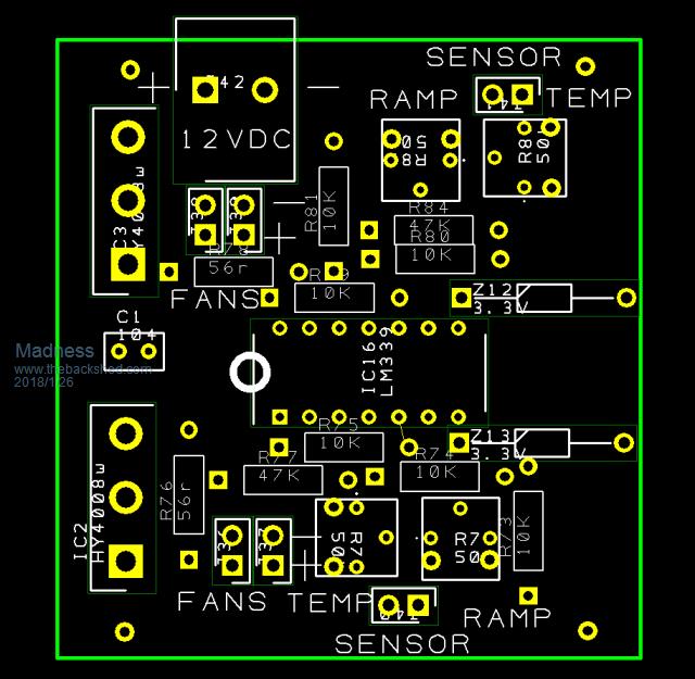 http://www.anotherpower.com/board/index.php?topic=1170.0 If anyones interested, i used a arduino and a 10k thermistor... 32khz pwm (so no noise at all) and adjustable ramp up speed... the code is about halfway down page... And you can duplicate it for 2 channel (or 4 if you use another timer) No pcb, like madness though. .sorry I think it works !! |