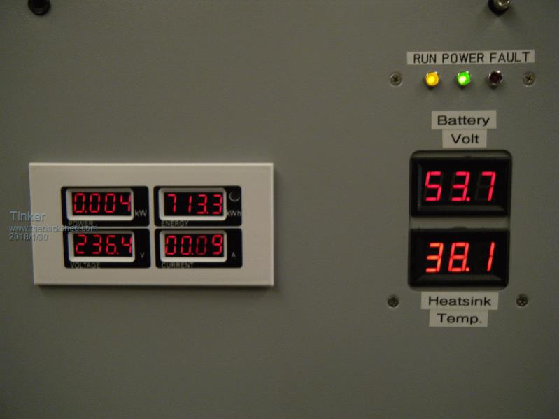 Klaus I turned the Aerosharp cases 90 degrees so the 140mm fans are on the top and bottom of the case this allows natural air flow due to convection. My fans don't spend much time running, they only kick in when the inverter is running around 3.5KW and beyond. However my heatsinks are quite a bit bigger than Oztules, the natural air flow and bigger size means the toroid fans run much more than those on the PCB side. Keep in mind too that originally those Aerosharps had zero air flow inside as they need to be watertight hanging of an external wall of a house. Since I started using a GTI the off grid inverter has it quite easy as the GTI is making 3-4.5KW. During the day it could be putting 4KW back through the inverter to charge batteries if there are no heavy loads on. This reduces as PWM kicks in as the batteries reach absorb voltage or if there is more loads on like AC. So the inverter I built only works hard at night as the GTI does the heavy lifting during the day. I am also about to add a second 5KW GTI but it will only have 1.5 KW of panels on it for the time being. Today was cloudy but here is the results from the GTI for the day it spent most of the afternoon doing very little as the battery was at full charge. Date: 2018-01-30 E-Today: 14.5kWh P-Peak: 3.63kW Yield: 4.79$ CO2 Avoided: 11.6kg E-Total: 1.36MWh Total Yield: 447.94$ Total CO2 Avoided: 1.09T There are only 10 types of people in the world: those who understand binary, and those who don't. |