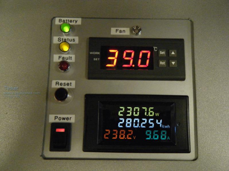 Nice to see you got that controller actually working. I dabbled with it a long time ago when Oztules first mentioned it (back in the PJ conversion days) but never got it running satisfactorily. My fan growled fearfully at low speed and was very iffy as to when to start up at all. The upshot of this was I gave up with this idea altogether. There are very cheap temperature controllers on ebay, some have a nice temperature readout as well. All the ones I use work well. But the best thing one can do with these home made toroid inverters is: Put the Mosfets on a decent size heatsink in the first place. Put it in a decent size box. It not hard to make one. Trying to shoehorn it into an aerosharp box might work in a cold climate but it gets quickly frustrating if anything in there requires changing. I found by doing both of the above, the 3 fans virtually never come on in the first place, so running them at low speed makes no sense. Today I ran another test after changing the internal (heatsink) fan control from the 8010 output to a small ebay controller. Its set to come on at 40 degrees big heatsink temperature. The separate two 80mm exhaust fan controller senses the small (hot) heatsink temperature. Ambient in the shed was 30 degrees. Load was 5500W It took almost 15 minutes before the fans came on. They managed to hold the temperature around 42 degrees inside the enclosure. The fridge was cycling on and off as well on top of the 5.5Kw load. After about 30 min I gave the batteries a rest from the 150+ amp drain. The fans then ran for a short time only before the temperature dropped below their set turn off point (I use 2 degree hysteresis). Klaus |