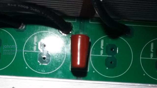 There is no 4.7 poly cap (end blown out again) and no large capacitors on the powerboard