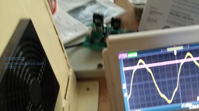 amount of standing power 50 volts and a draw of 2.5 amps the 120 resistor on the control board will get very hot ,does this suggest that the FET gates, there is 24 HY4008 FETs to drive, are they drawing to much current, the transformer makes virtually no noise but produces the following wave form