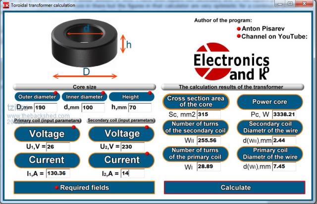 Good evening everyone! I'm new to the forum and even newer in this(off-grid solar inverter)and because I stomp at the transformer size/power I thought is better to ask for help. To put a a month story short, I got across a toroidal transformer rated at 2.5 KVA, which had to unwind it and rewind it properly to suit the need of an inverter. problem is similar to those I've read in this forum ( no info's about the core specs). I've tried usual formulas, with approximation or suggested values for magnetic fields etc., and everything turn out different or confusing(for me) values related. Recently I've found a program to calculate a toroidal transformer but putting values aside formulas, there's like 120 turns difference for secondary. the core itself is D-204mm, d-127mm, H-76mm