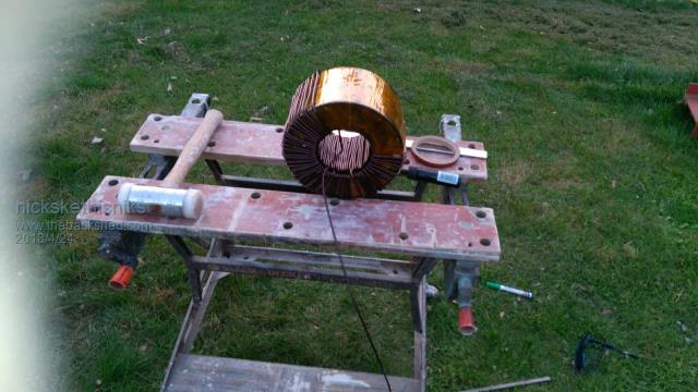 And the 50mm/2 cable for your primary will fit the centre hole. If you have 4 in hand of say 1.8mm diameter enamelled copper for the secondary.