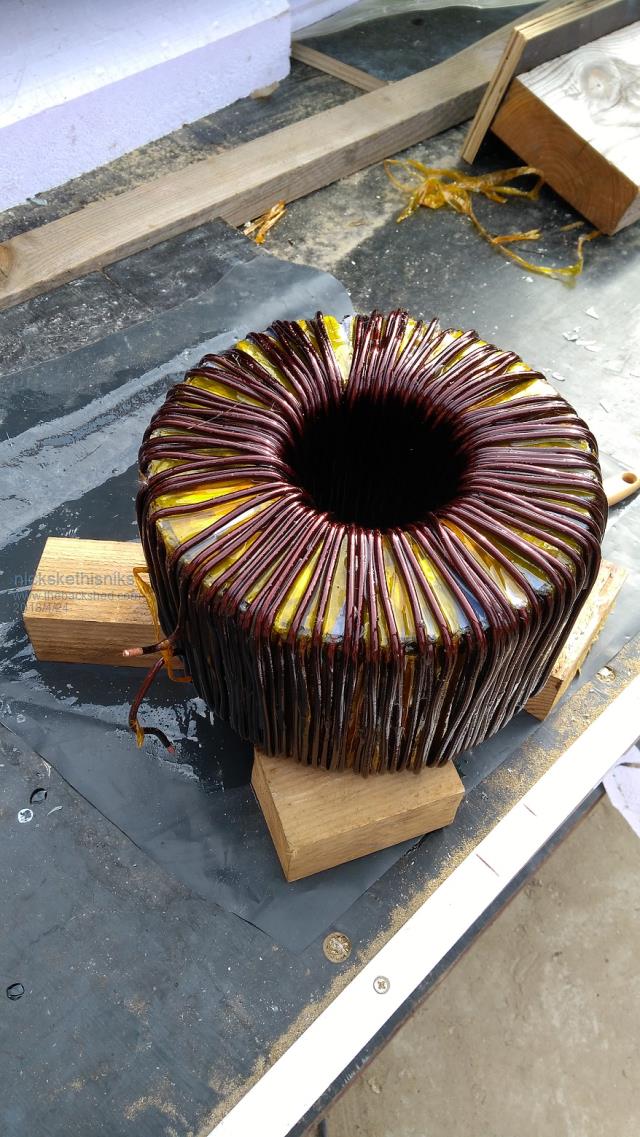 I will try winding the secondary for the big one with 3,55mm wire, the primary will be wound with many smaller wires, we will see how that will work out.