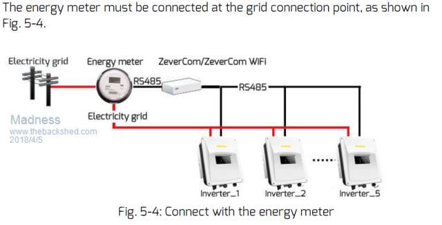 I have one of these Eastron SDM 220 Modbus meters. After a bit of fiddling around, I finally got it communicating via RS485 with my Zevercom device for my Grid Tie Inverters. However, the Zevercom is telling me that my power consumption is exactly the same as power produced by the GTIs. Has anybody else had experience with these, I can't fiddle around too much with it ATM as it is wired into the house power now and I have to shut down everything to work on it.