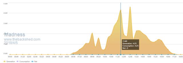 Here is the graph, net is shown flatlining across the bottom, Generation and Consumption are the same value all day.