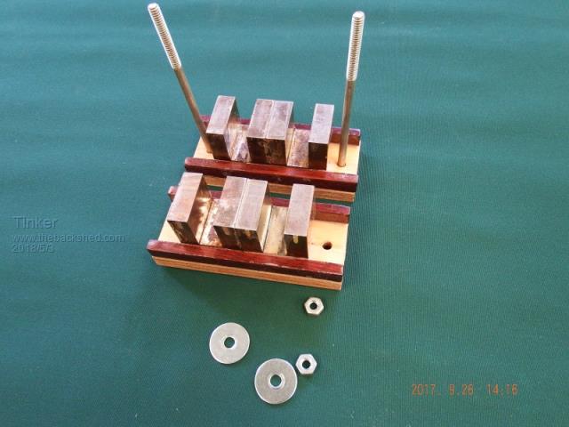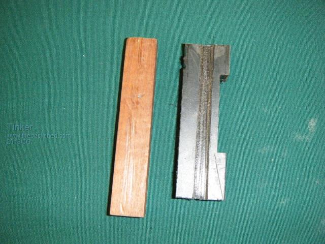 Then they were epoxied onto a plywood base with hardwood guide strips on each side.