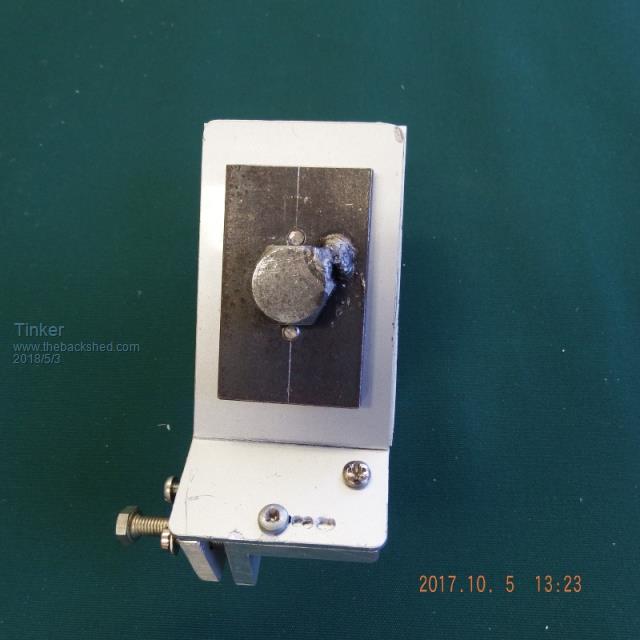 To stop the jig slipping in the lathe chuck I used a bolt head for the chuck jaws to clamp on.