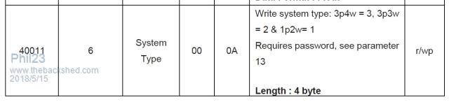 Hi Mad, Don't think I have. Found a few hints in the SDM630 3 phase manual though. And also the parameters that I think allow it to operate as a 3 channel single phase meter. They mention it requires a password, but I'd expect a lot of the other parameters would too. Makes sense if the device's setup mode is P/W protected, so too should all the registers that related to configuration. They then mention these two commands, but don't say what the data type is on the P/W that allows writes. Have also had a look at the code in the Arduino Library for these meters, but I can't see anywhere that's using any of the password related registers. Have 3 meters running now, just need to decide what to do with the data. Phil |