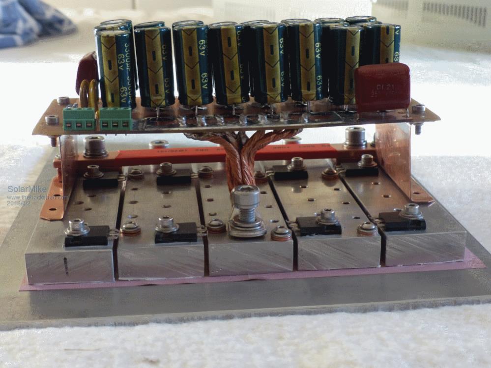 The bigger inverter will use all 5 parallel mosfets in each leg and be water cooled.