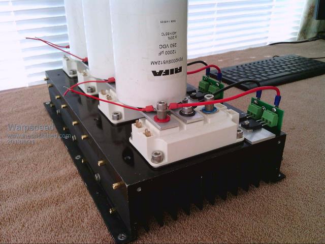 Those big white things are 1200v 200 amp half bridge IGBTs. Just like the picture of the big black 350 amp one Yahoo2 posted earlier. I plan to use the same identical driver boards for those, as for the smaller individual mosfets.