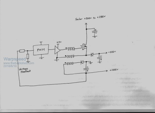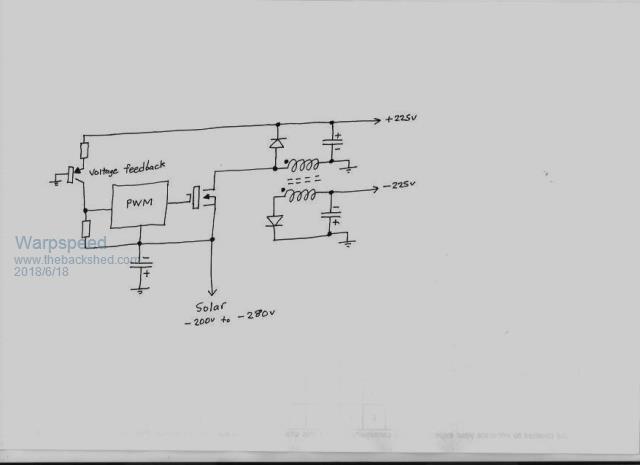 My own system also uses switching power supplies to generate high voltage regulated +ve and -ve dc supply rails direct from solar panels.