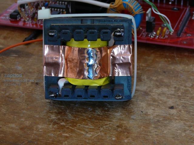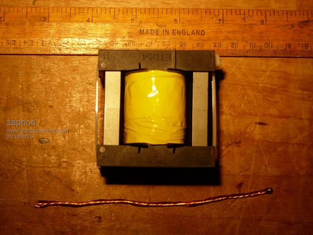 Not really much to see from the side, its pretty simple. 1:1 flyback choke with 18+18 turns of interleaved copper foil.