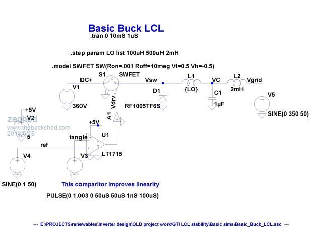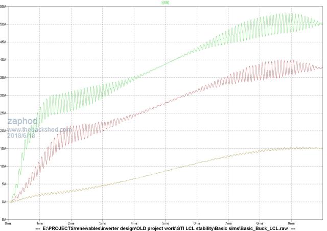 Sorry for not posting pictures of the actual data.....1st is spice schematic, 2nd is V5 current for three different values of LO. I should add the schematic is grossly simplified to have any hope of completing a grid half cycle this century on my computing resources hence the use of a switch instead of real mosfet etc etc